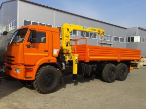 Тягач 43118 с КМУ представляет собой крупнотоннажную модель спецтехники, основное назначение которой заключается в перевозке массивных грузов с различными размерными показателями. Колесная формула 6Х6 повышает выносливость и проходимость грузовика на дорогах общего назначения с твердым покрытием, грунтовых дорогах, бездорожье. Подобные ТС способны преодолевать подъемы до 25 градусов при полной загрузке.