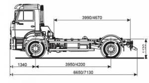 Шасси 6*4, длина рамы 5 970 мм, межосевое растояние мм, грузоподъемность 12 тонн