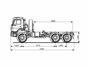 Шасси 6*6, длина рамы 4 680 - 5 200 мм, грузоподъемность 8,6 тонн